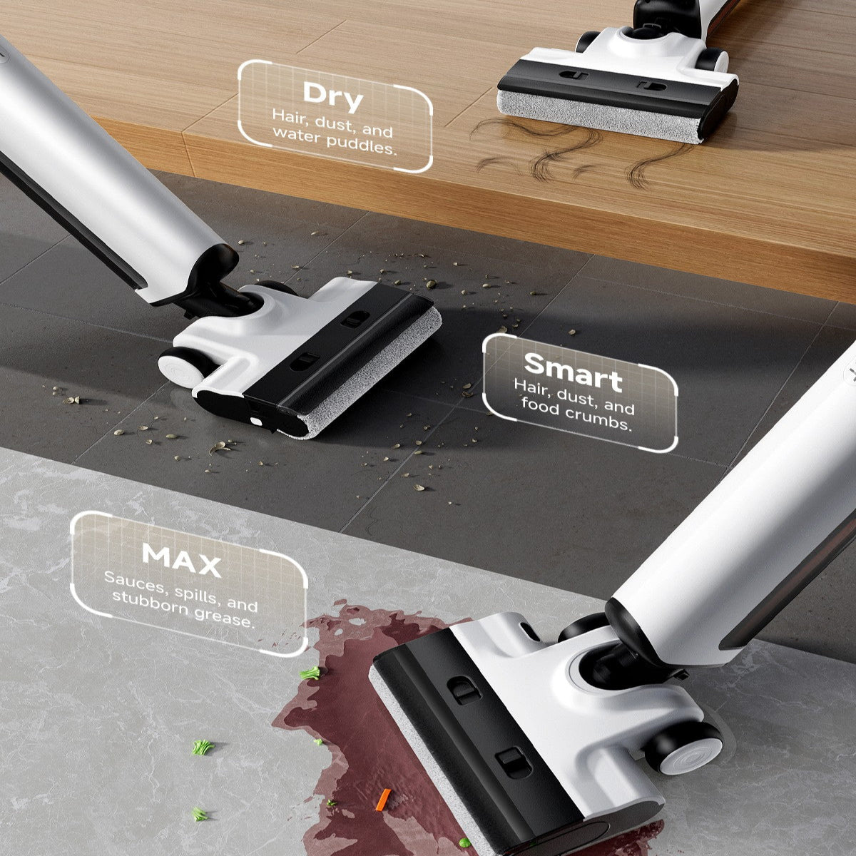 Intelligent Mode: Hair, dust, and food crumbs.